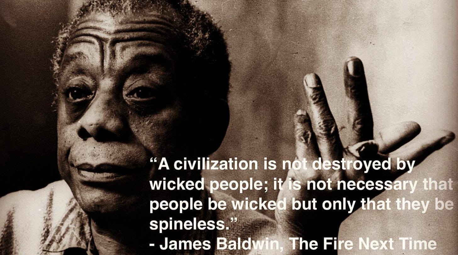 James Baldwin says, “a civilization is not destroyed by wicked people; it is not necessary that people be wicked but only that they be spineless.”